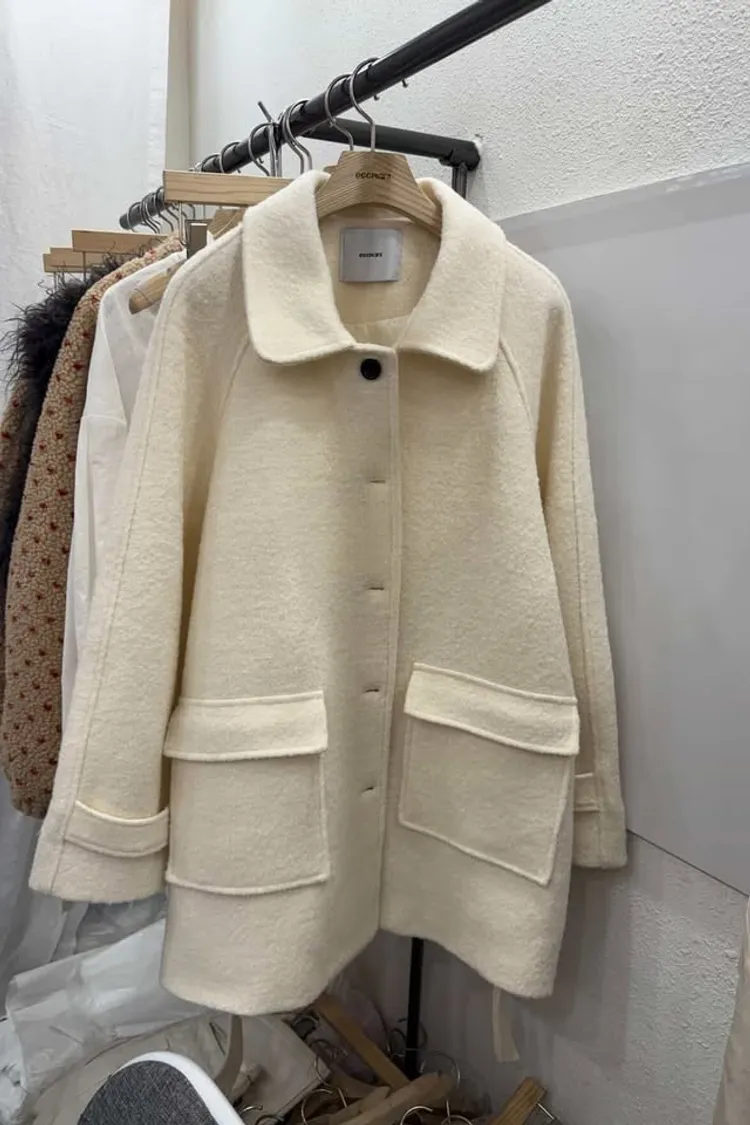 雪白綁帶中長羊毛大衣