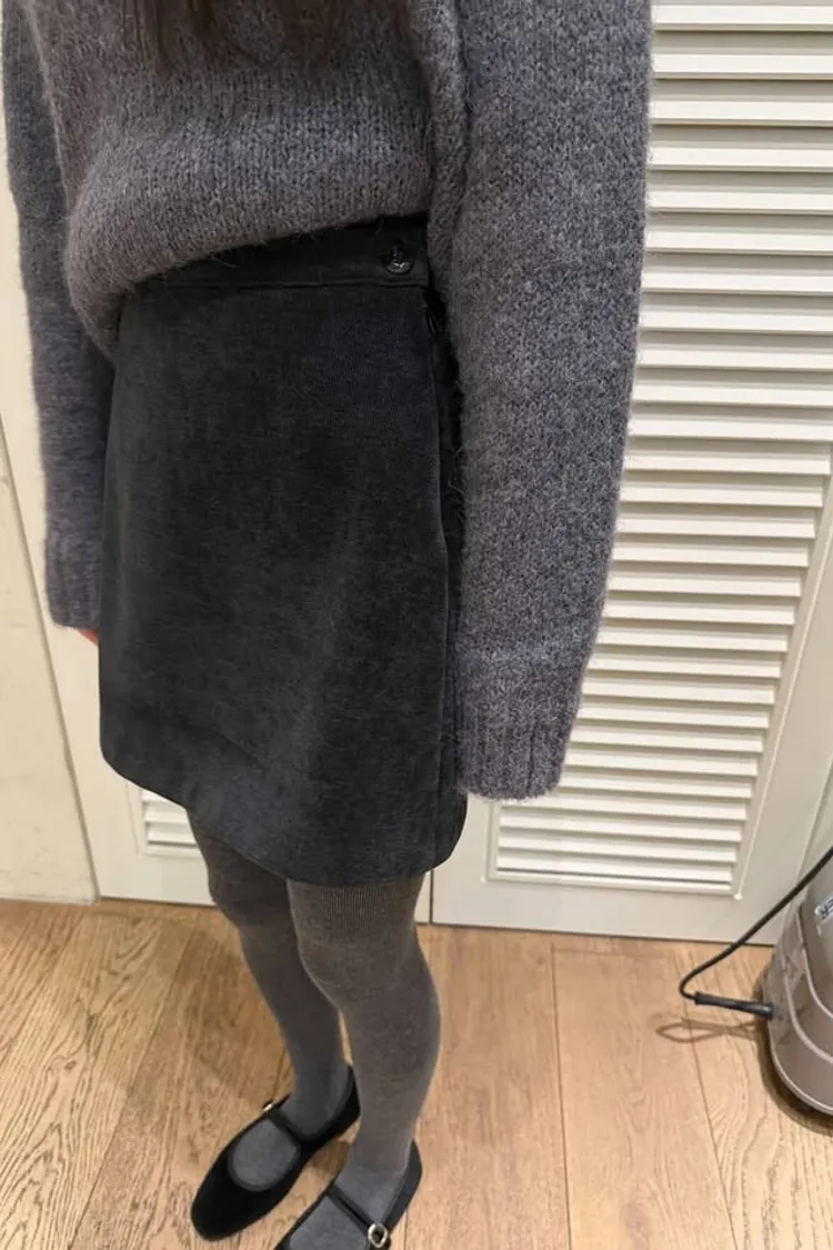 絲滑薄絨側釦短裙