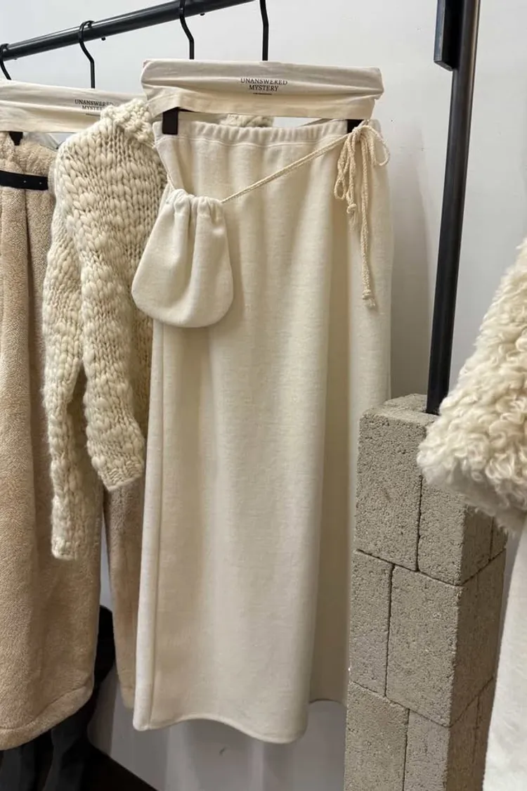 小腰包毛料柔軟長裙Set