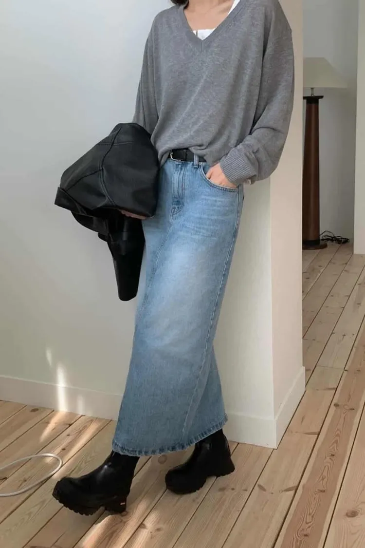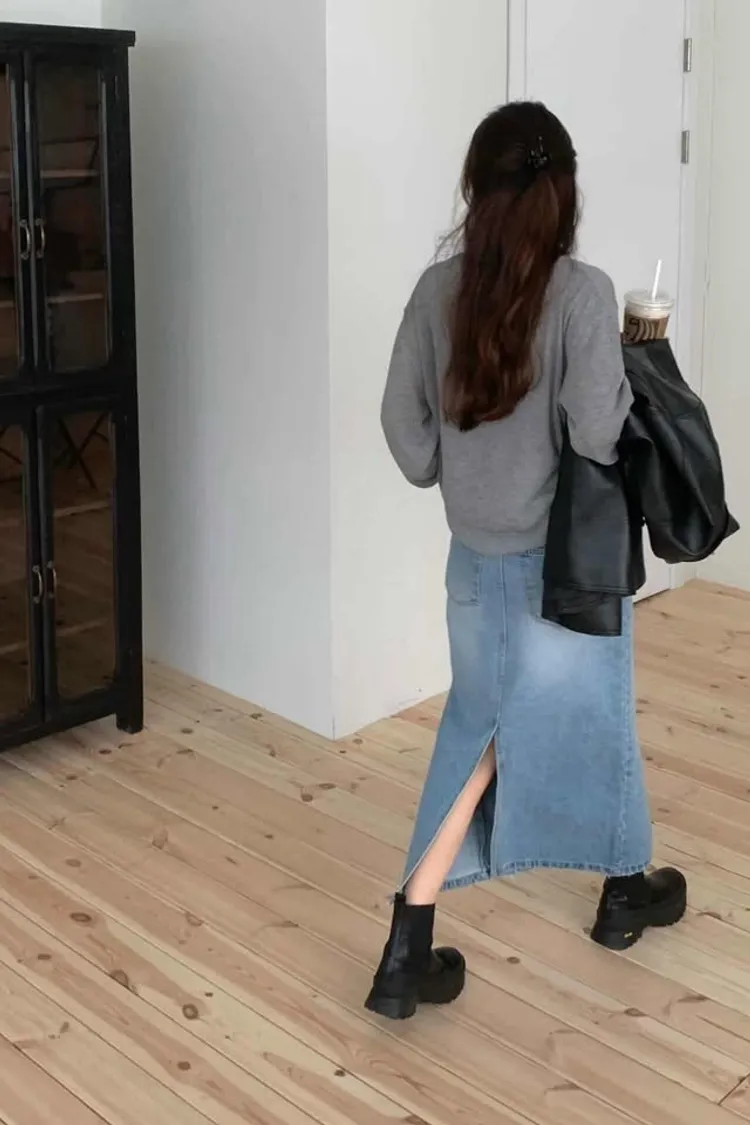 基礎直順後開岔牛仔裙