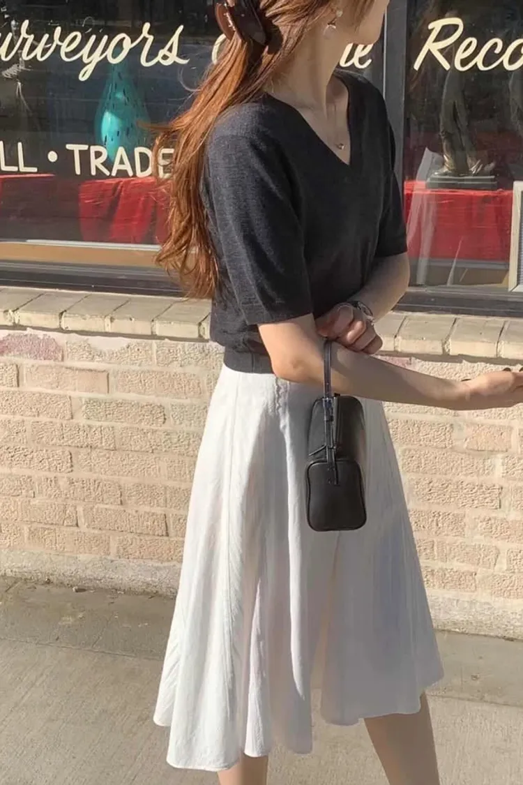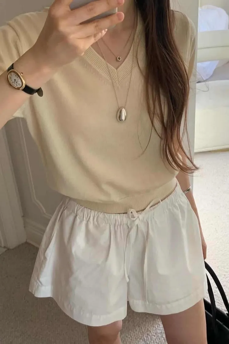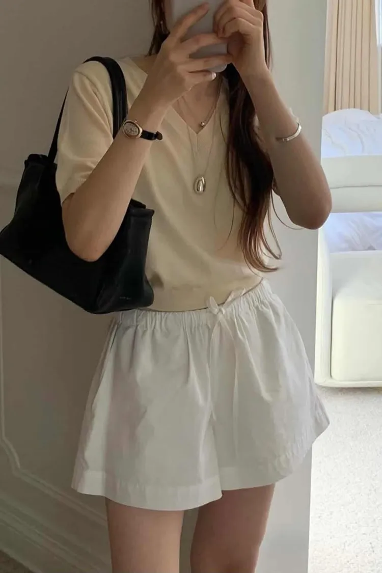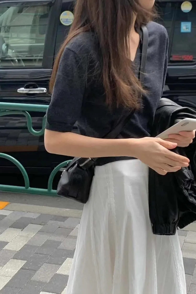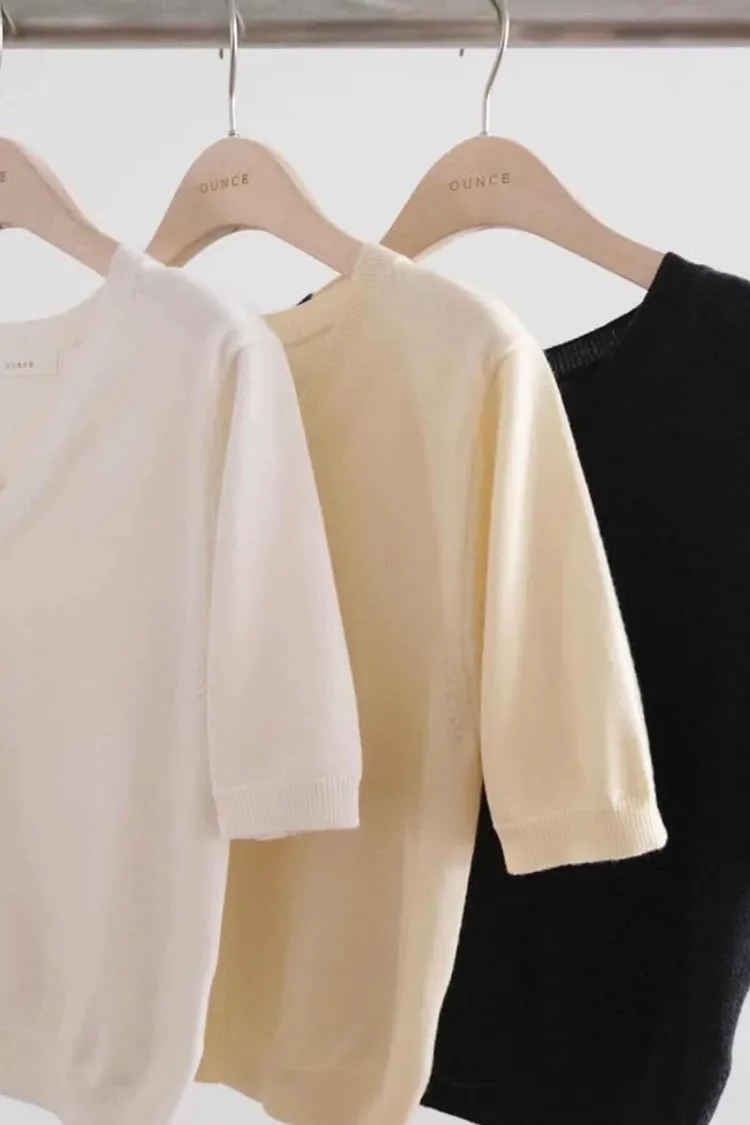 軟糯V領薄針織五分袖